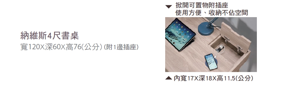 首頁 > 書房家具 > 書櫃/書桌/儲物櫃 > 納維斯4尺書桌