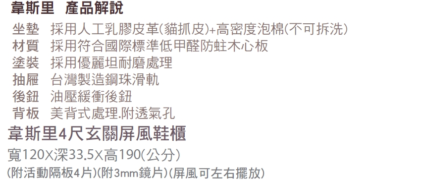首頁 > 客廳家具 > 鞋櫃/屏風/玄關 > 韋斯里4尺玄關屏風鞋櫃