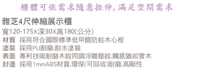 首頁 > 客廳家具 > 鞋櫃/屏風/玄關 > 雅芝4尺伸縮展示櫃
