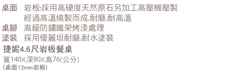 首頁 > 餐廳家具 > 餐桌 > 捷妮4.6尺岩板餐桌