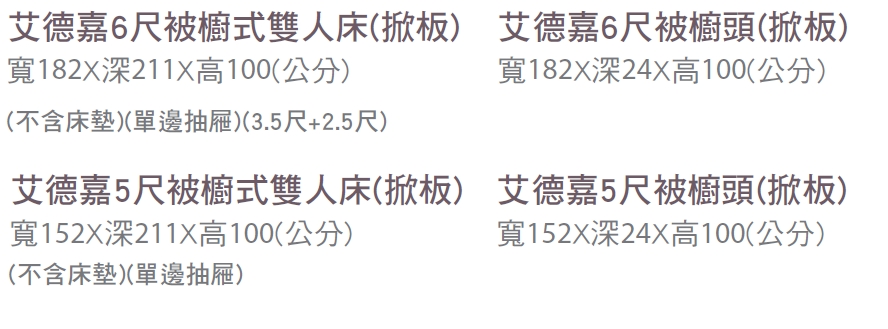 首頁 > 卧室家具 > 床架 > 艾德嘉被櫥式雙人床(掀板)