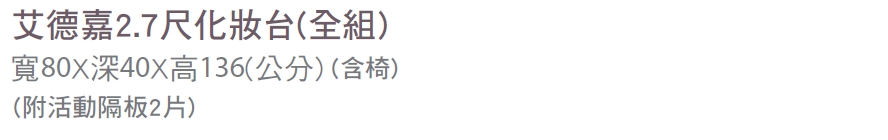 首頁 > 卧室家具 > 化妝台 > 艾德嘉2.7尺化妝台(全組)