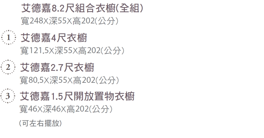 首頁 > 卧室家具 > 衣櫃 > 艾德嘉8.2尺組合衣櫥(全組)可拆