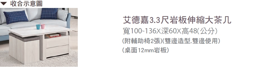 首頁 > 客廳家具 > 茶几/邊桌 > 艾德嘉3.3尺岩板伸縮大茶几