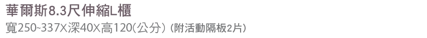 首頁 > 客廳家具 > 電視櫃/展示櫃 > 華爾斯8.3尺伸縮L櫃