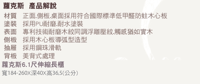 首頁 > 客廳家具 > 電視櫃/展示櫃 > 蘿克斯6.1尺伸縮長櫃