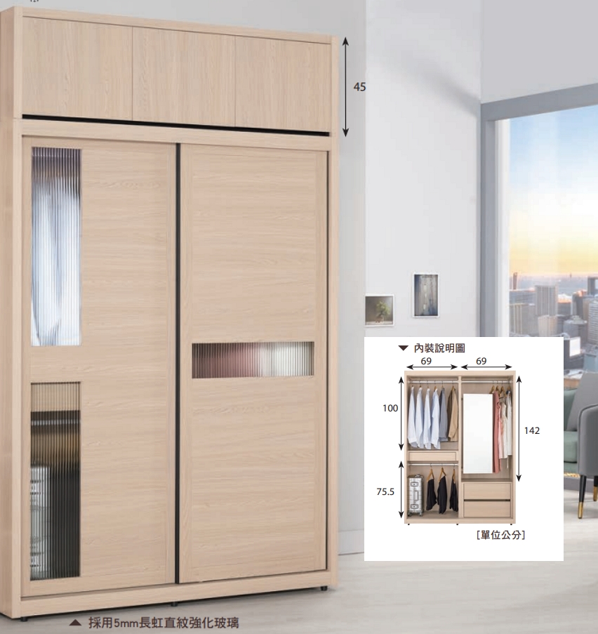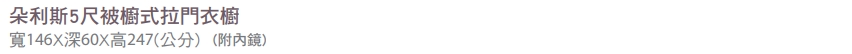 首頁 > 卧室家具 > 衣櫃 > 朵利斯5尺被櫥式拉門衣櫥(加高款)