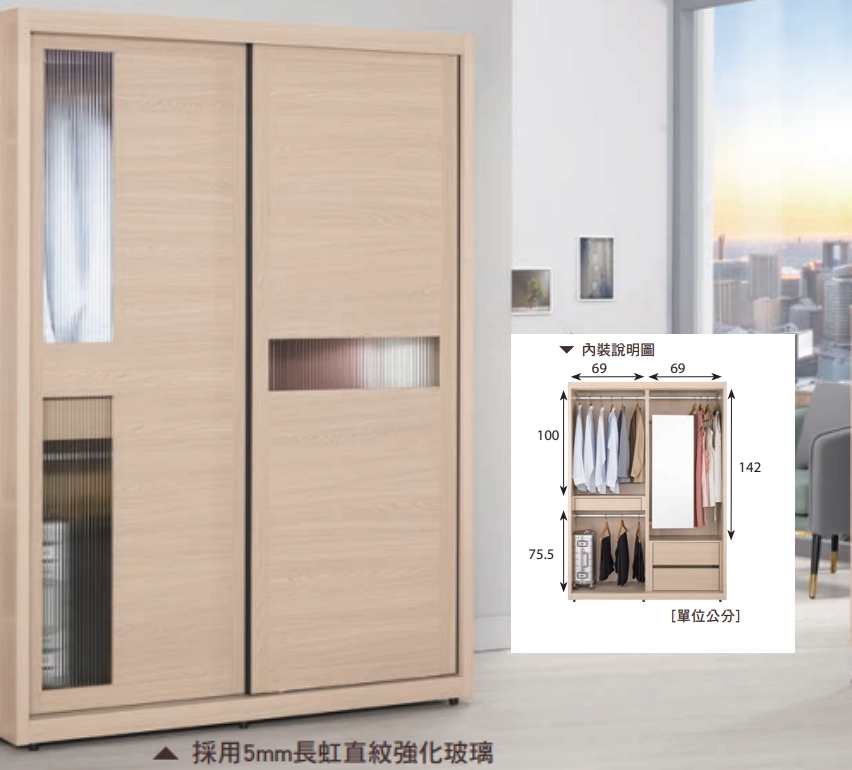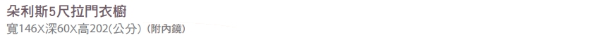 首頁 > 卧室家具 > 衣櫃 > 朵利斯5尺拉門衣櫥