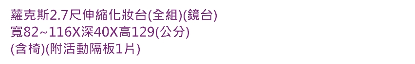首頁 > 卧室家具 > 化妝台 > 蘿克斯2.7尺伸縮化妝台(全組)