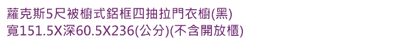 首頁 > 卧室家具 > 衣櫃 > 蘿克斯5尺被櫥式鋁框四抽拉門衣櫥(黑)
