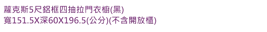 首頁 > 卧室家具 > 衣櫃 > 蘿克斯5尺鋁框四抽拉門衣櫥(黑)
