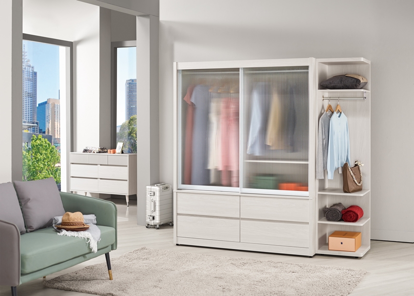 首頁 > 卧室家具 > 衣櫃 > 蘿克斯5尺鋁框四抽拉門衣櫥(白)
