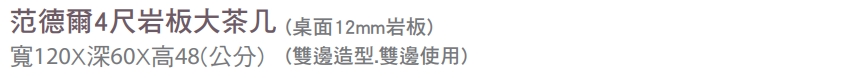 首頁 > 客廳家具 > 茶几/邊桌 > 范德爾4尺岩板大茶几