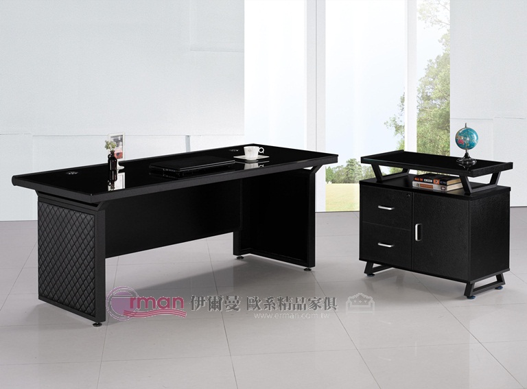 材質:鐵件烤漆+PVC合成皮 JB015造型皮製6尺L型辦公桌組(含主桌+側櫃+活動櫃) |