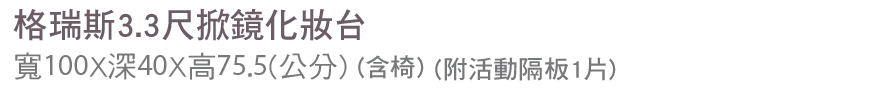 首頁 > 卧室家具 > 化妝台 > 格瑞斯3.3尺掀鏡式化妝台(含椅)