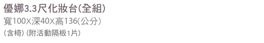 首頁 > 卧室家具 > 化妝台 > 優娜3.3尺化妝台(含椅)