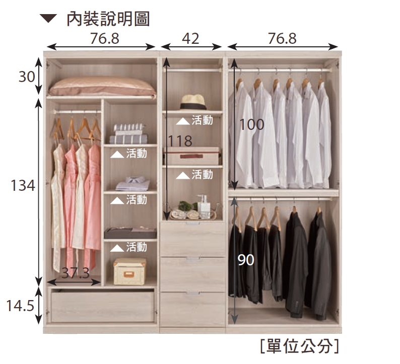 首頁 > 卧室家具 > 衣櫃 > 愛莎6.7尺組合衣櫥(全組)可拆