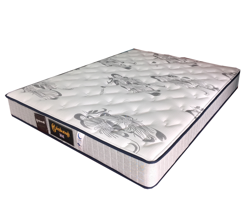 市售床墊往往只是彈簧包上薄薄的車花,甚至床面都還可以摸到一圈一圈的彈簧,而好的床墊除了依不同個人喜好設計不同的軟硬系數外,最重要的,不論軟床或硬床,都必需符合支撐層(彈簧層),強韌有力經的起長年累月的壓縮又不失彈性、不易彈性疲乏;服貼層(襯材層)有效緩衝身體重量,並填補身體曲線的空隙,柔軟舒適,給身體輕盈的感受。英國Gainsborough 床墊高張力做法,如表面張力讓身體輕盈的懸浮著,一種被擁抱且無壓力的感覺,就是五星級飯店採用來塑造賓至如歸的法寶。