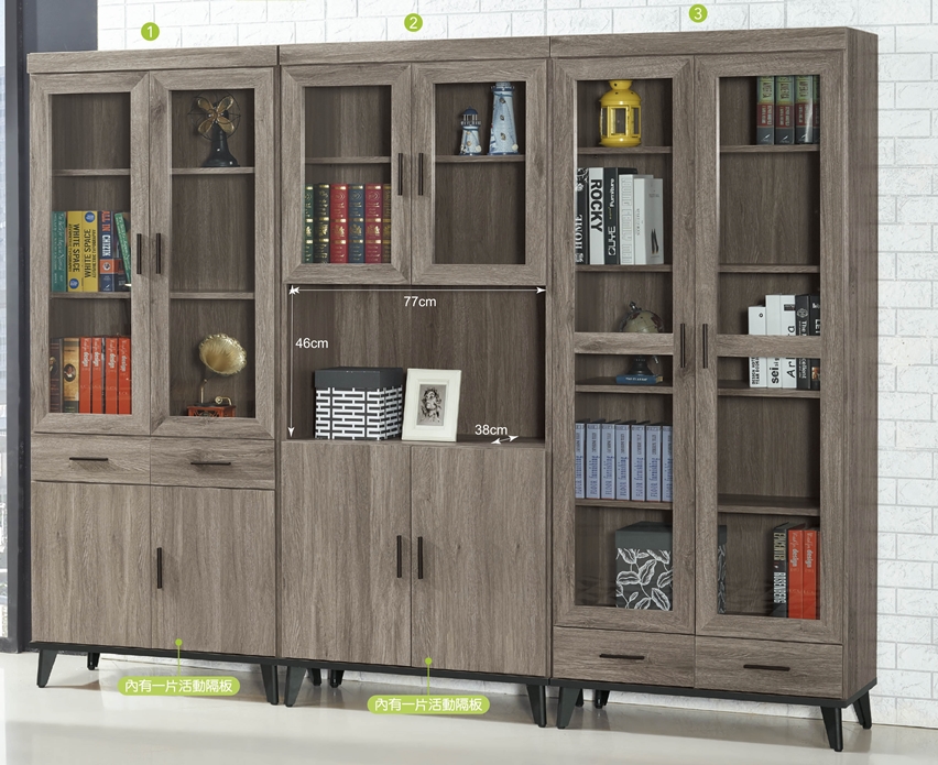 書櫃尺寸皆同:寬80.8CM深39.8CM高194.5CM