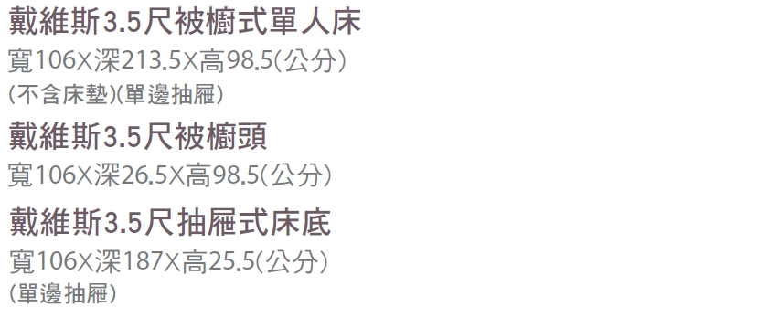 首頁 > 卧室家具 > 床架 > 戴維斯3.5尺被櫥式單人床