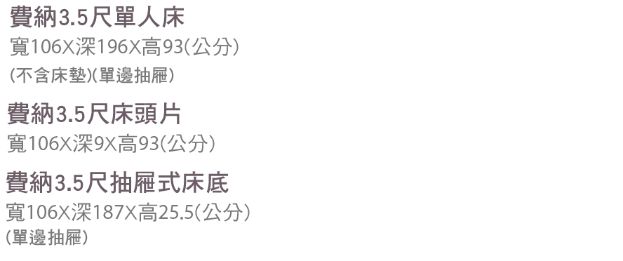 首頁 > 卧室家具 > 床架 > 費納3.5尺單人床