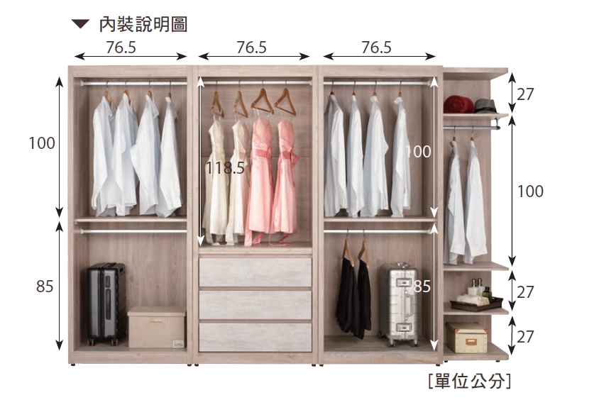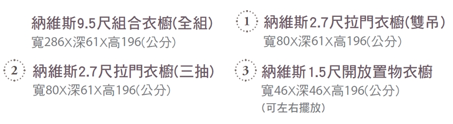 首頁 > 卧室家具 > 衣櫃 > 納維斯9.5尺組合衣櫥(全組)(可拆購)