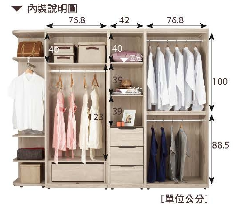 米爾娜8.4尺組合衣櫥(全組)可拆 NT6150元