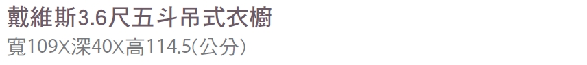 首頁 > 卧室家具 > 斗櫃 > 戴維斯3.6尺五斗吊式衣櫥