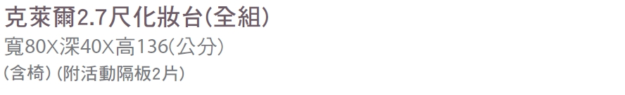 首頁 > 卧室家具 > 化妝台 > 克萊爾2.7尺化妝台(全組)