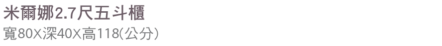 首頁 > 卧室家具 > 斗櫃 > 米爾娜2.7尺五斗櫃