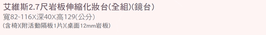 首頁 > 卧室家具 > 化妝台 > 艾維斯2.7尺岩板伸縮化妝台(全組)
