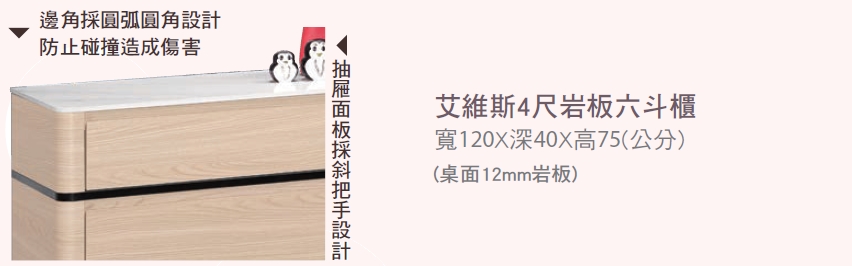 首頁 > 卧室家具 > 斗櫃 > 艾維斯4尺岩板六斗櫃