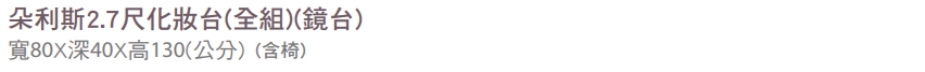首頁 > 卧室家具 > 化妝台 > 朵利斯2.7尺化妝台(全組)