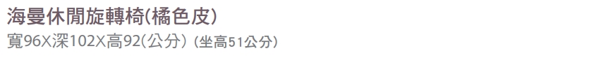 首頁 > 客廳家具 > 沙發1+2+3 > 海曼休閒旋轉椅(橘色皮)