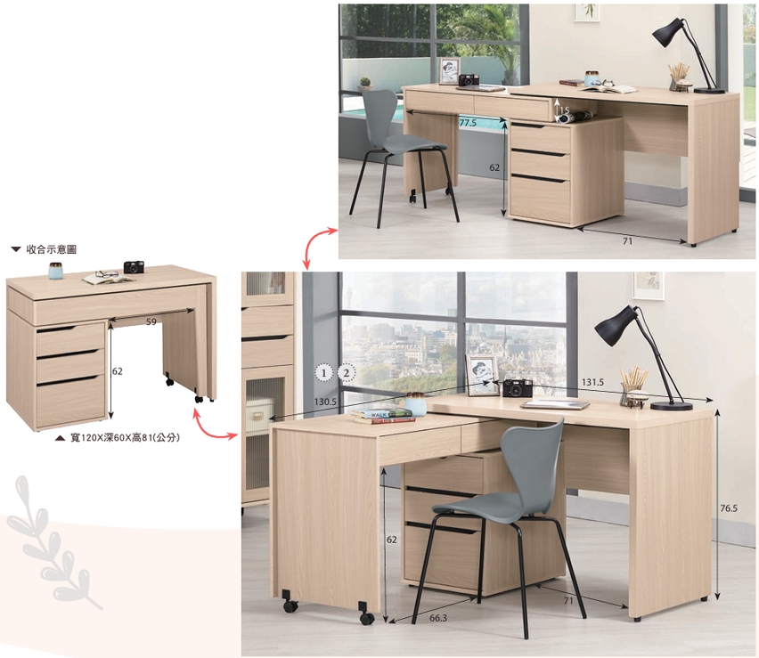 首頁 > 書房家具 > 書櫃/書桌/儲物櫃 > 朵利斯4尺多功能旋轉桌