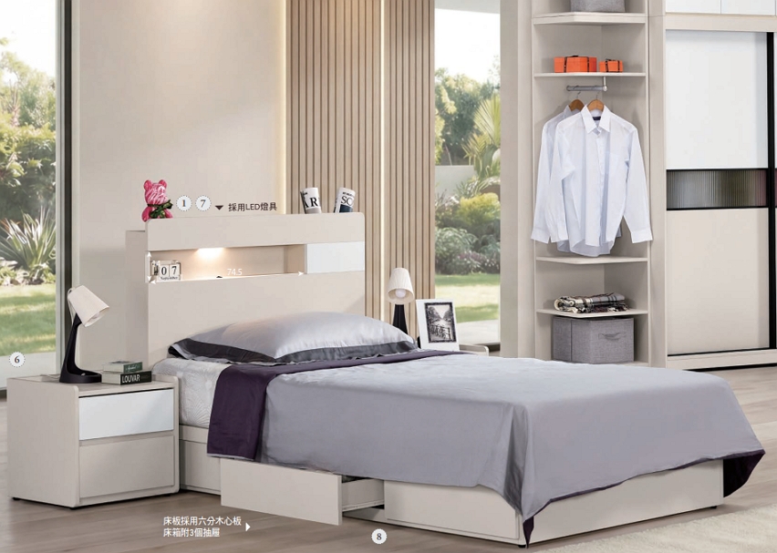 (不含床墊)(單邊抽屜)(不含編號6床頭櫃)