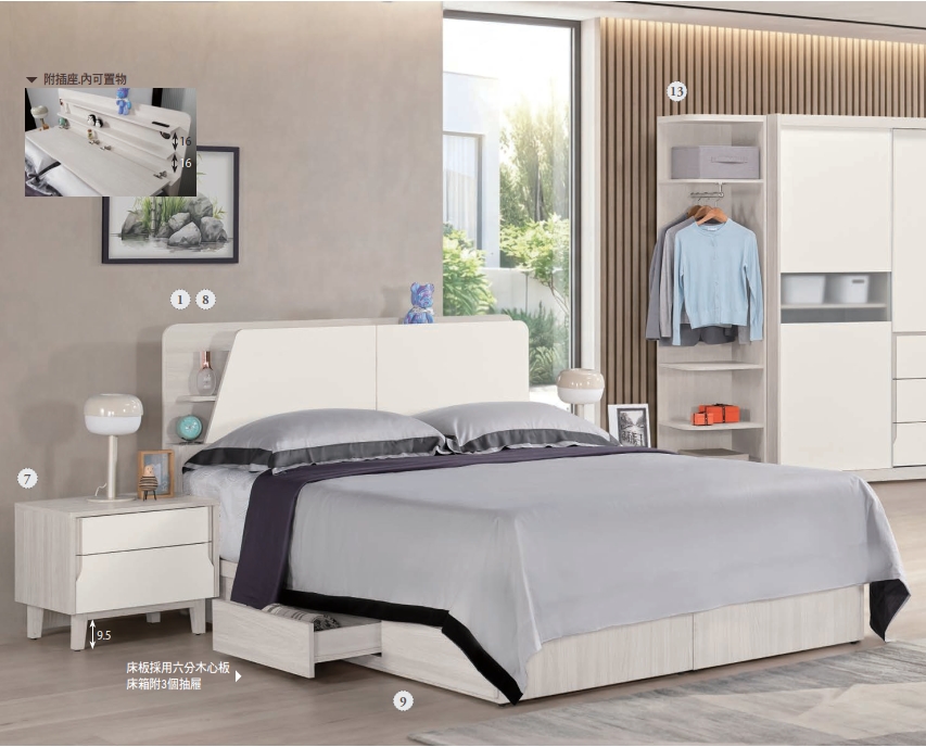 (不含床墊)(單邊抽屜)(不含編號7床頭櫃)